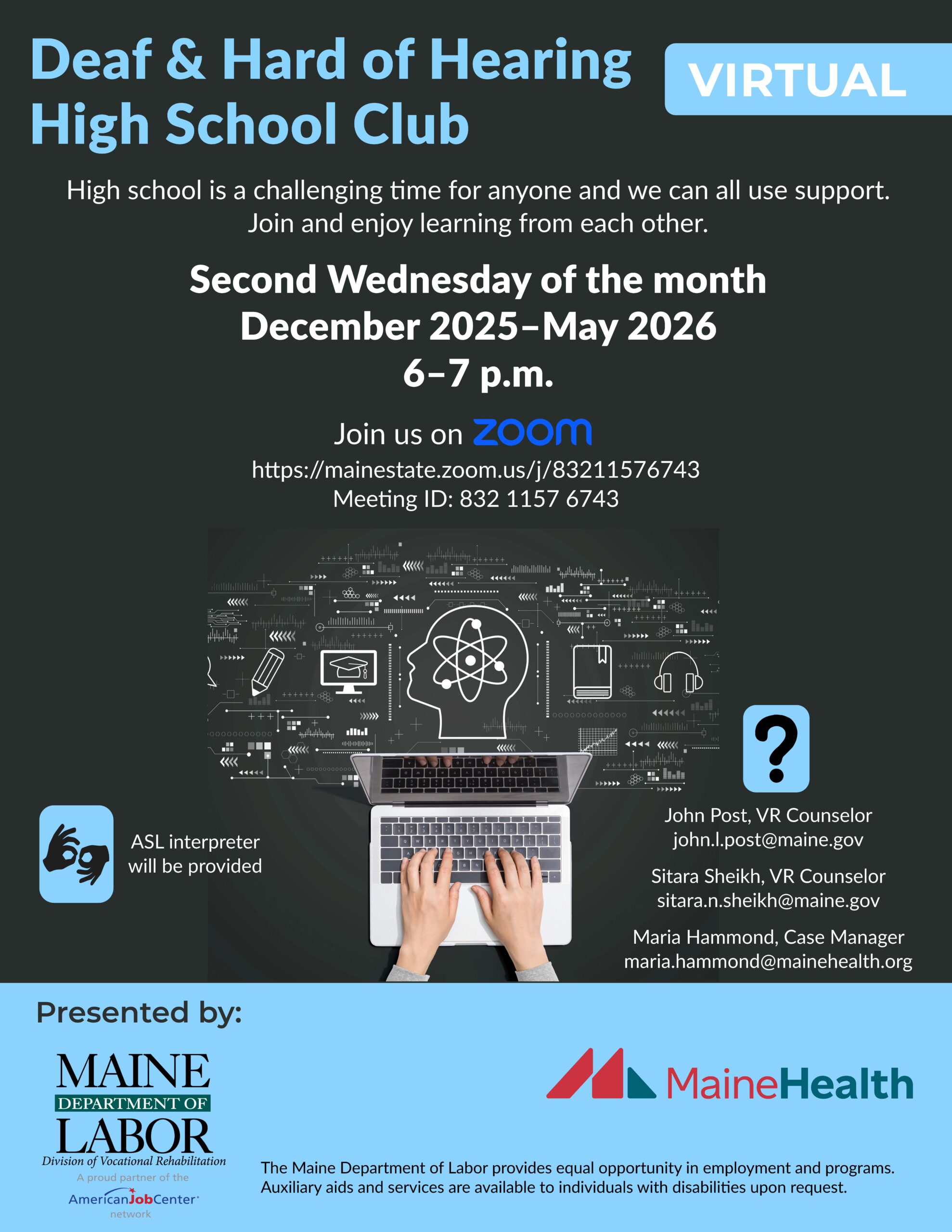 MaineHealth Behavioral Health presents a Deaf Mental Health Workshops: April 17 (Deaf only): Reducing mental health stigma in the Deaf community