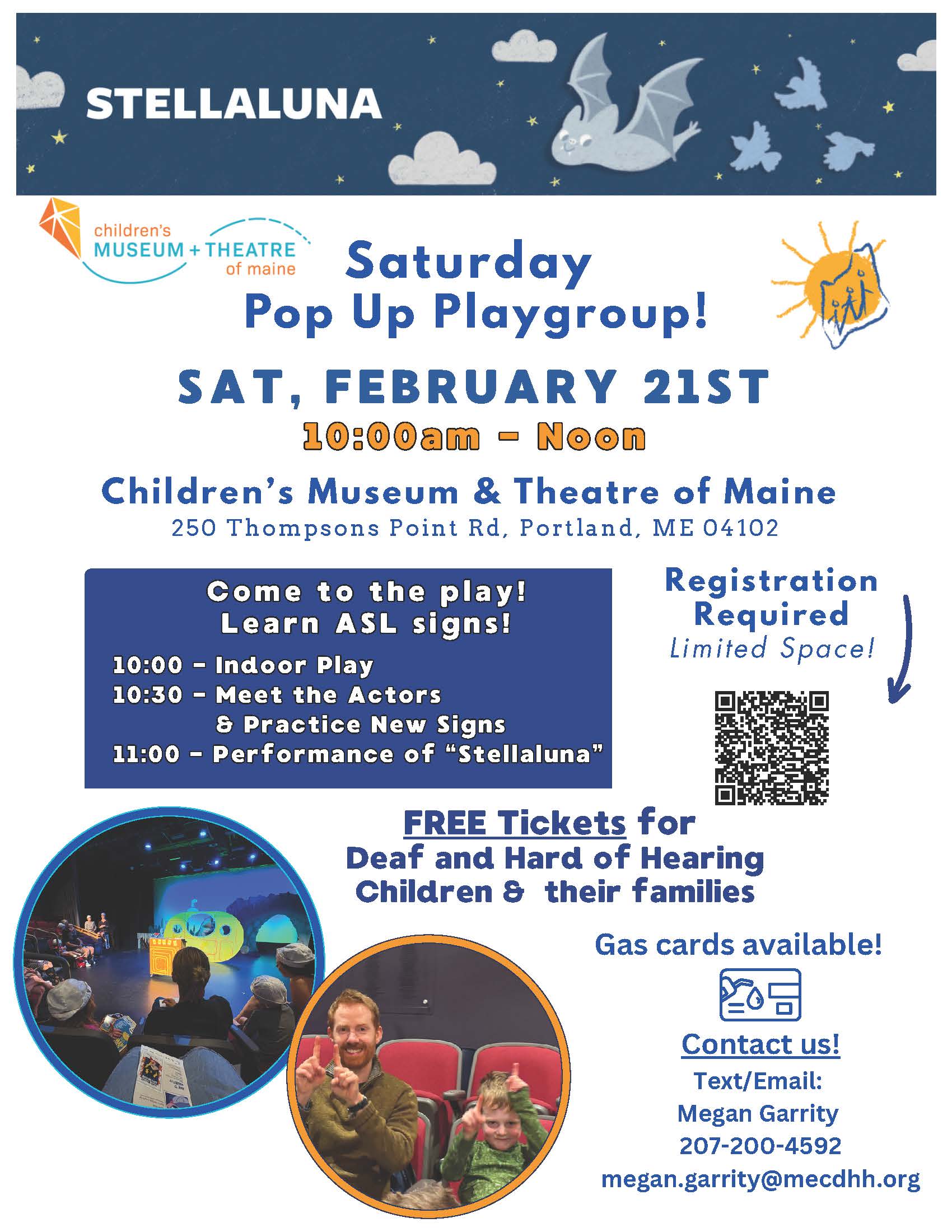 Join us at the Children's Museum and Theatre of Maine in Portland from 10:00am - 12:00pm for a performance of Stellaluna with ASL interpretation! For more information, contact Megan Garrity at 207-200-4592 or email her at megan.garrity@mecdhh.org.